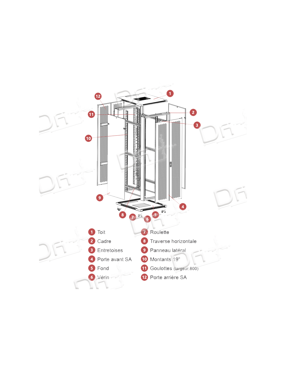 Baie serveur 19 pouces 24U 800x600mm avec porte avant et arrière saloon ajourées, baie en Kit. gestion et de distribution DATA et IT multi-baies.