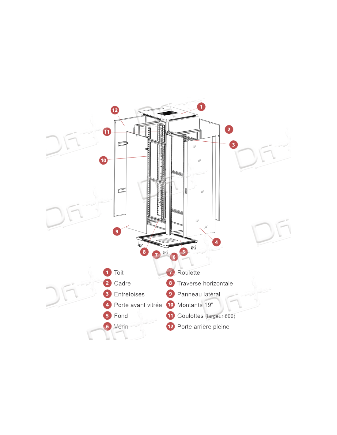 Baie réseau 19 pouces 42U 800x1000mm avec porte avant vitrée et porte arrière pleine, baie en Kit. gestion et de distribution DATA et IT multi-baies.