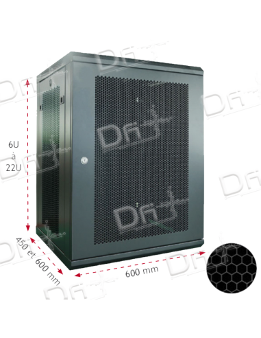 Coffret 19 pouces 22U profondeur de 450mm Easy Poz, porte avant et panneau ajourée de haute qualité rentable en matière équipement et accessoires 19 pouces. Livré montée