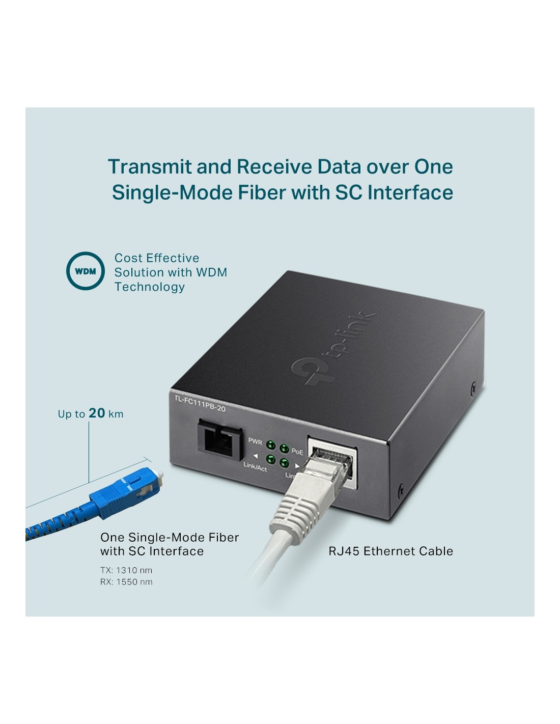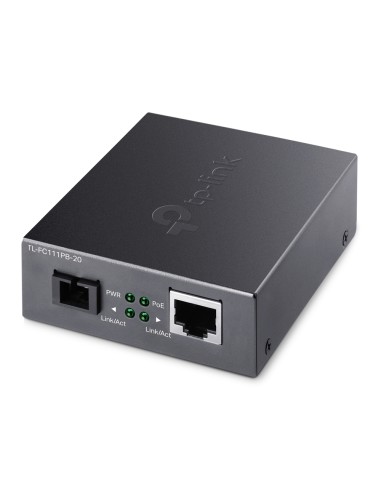 Convertisseur TP-Link média TL-FC111PB-20. De 10/100 Mbps avec sortie PoE 802.3af et un port fibre SC 100 Mbps. Technologie WDM