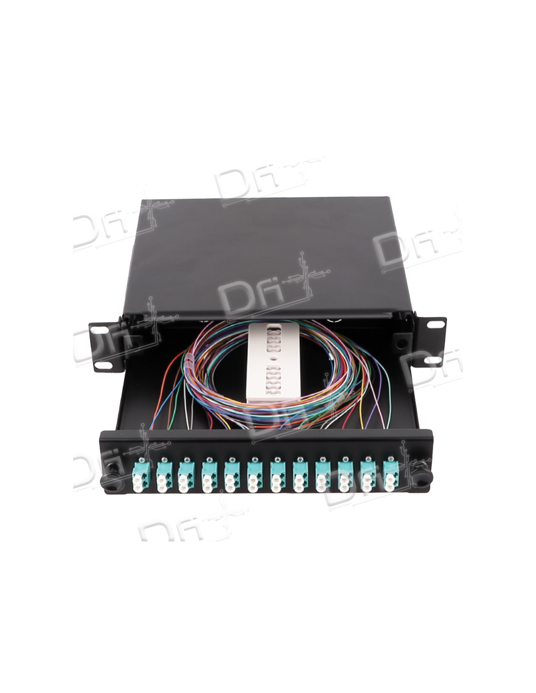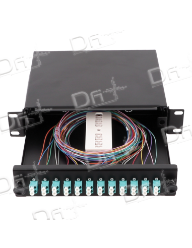 Tiroir optique 10 pouces 1U comprenant 6 pigtails SC OS2 Monomode UPC et 3 traversées montées et visées SC Duplex OS2 Monomode UPC